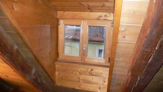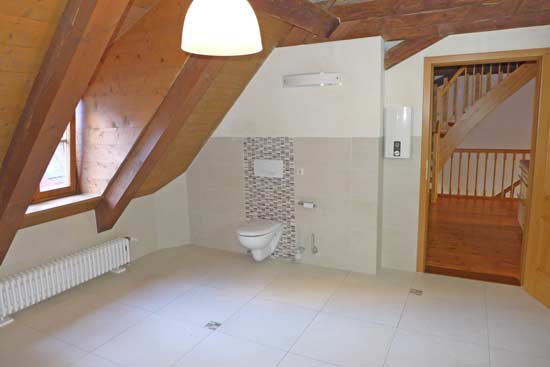 • Dachgalerieraum im Dachspitz mit zwei kleinen Dachgauben